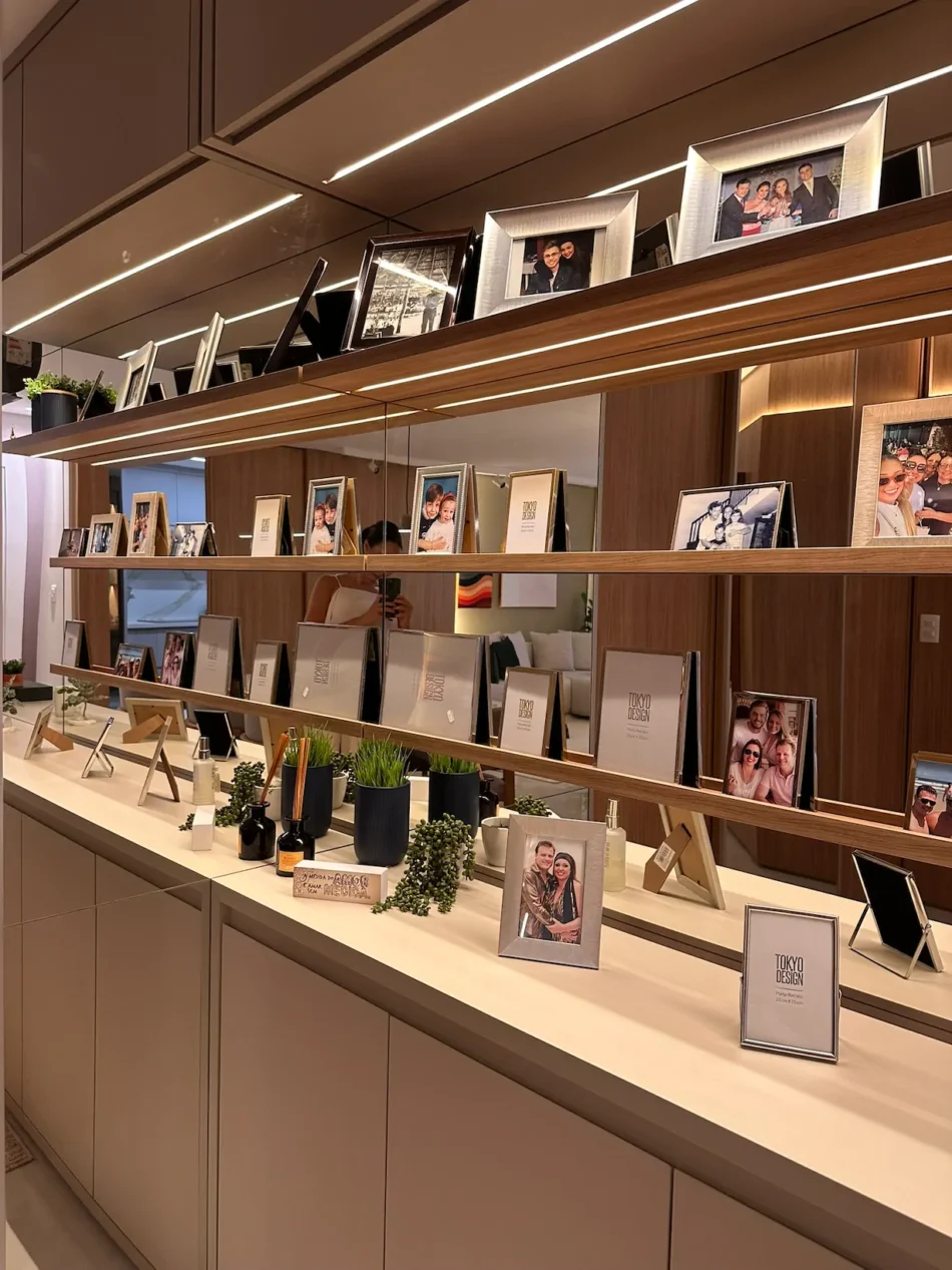Os pedidos especiais do casal foram atendidos com maestria: um cantinho do café convidativo, um espaço reservado para leitura e oração, além de um local especial para expor porta-retratos cheios de memórias. A cozinha foi planejada para máxima funcionalidade, acomodando todos os eletrodomésticos, enquanto os banheiros ganharam soluções personalizadas, incluindo gavetas para chinelos.