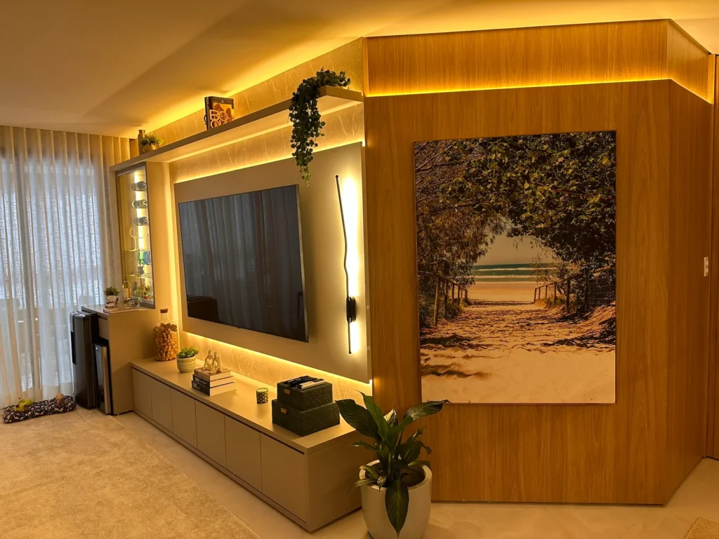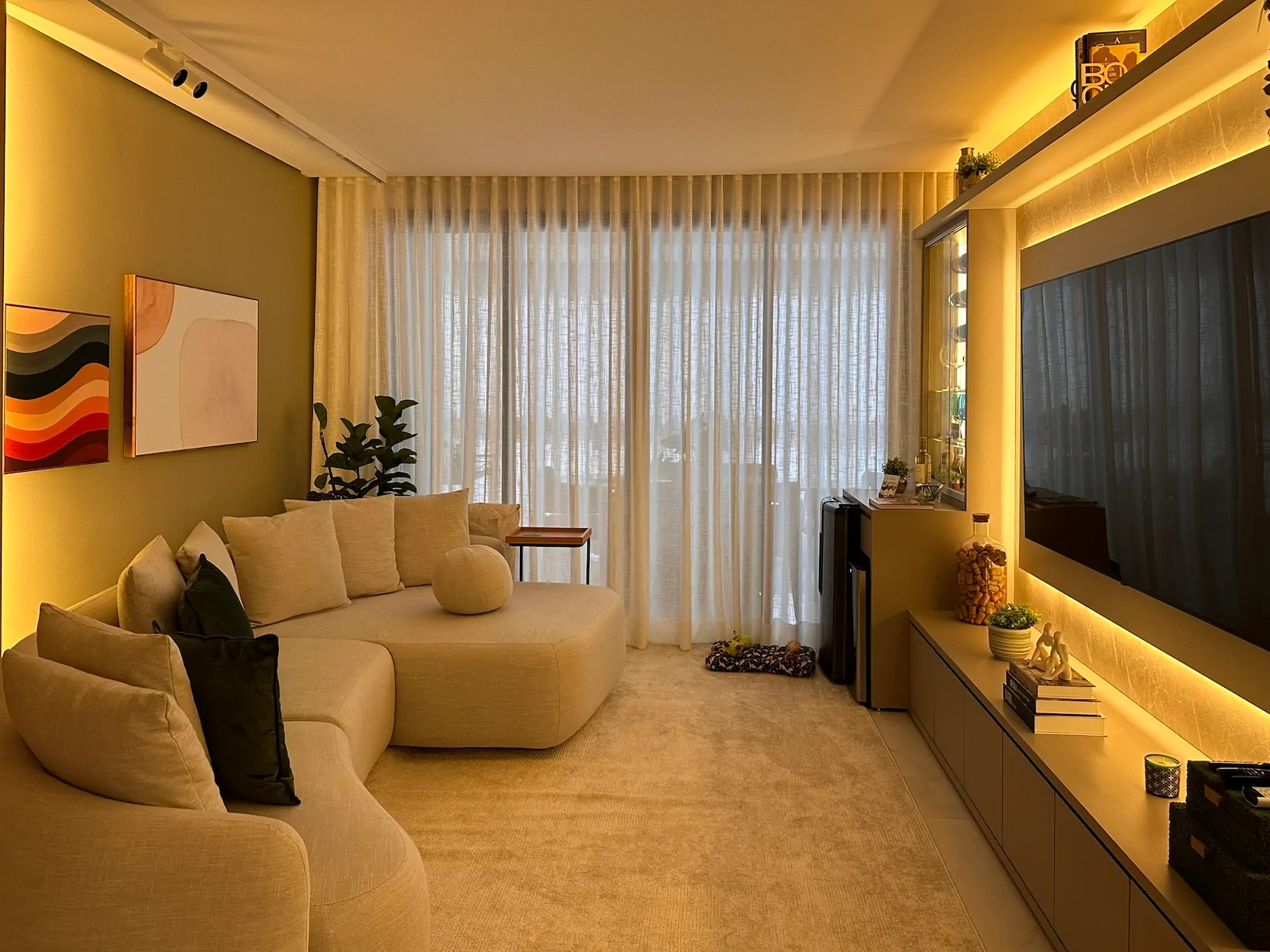 “Cada detalhe tem significado. O apartamento agora traduz nossa essência e nos envolve em conforto e boas lembranças. Não poderíamos estar mais felizes!”, compartilha o casal. Mais do que um projeto, um lar cheio de histórias foi criado aqui.